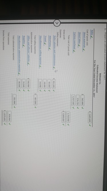 Sales salaries and commissions advertising travel miscellaneous selling expense. Belmain co estimated in come statement for the year ended december 31 2016 sales cost of goods sold direct materials direct labor factory overhead 600 000 360 000 422 000 cost of goods sold 1 382 000 gross profit expenses. Adjusted trial balance if you want you may take a look at how an income statement looks like here before we proceed. With this in mind the various department heads were asked to submit estimates of the costs for their departments during the year.
