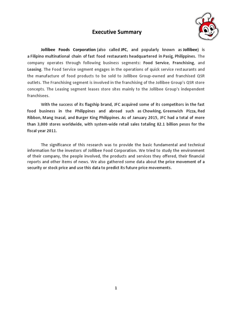 Jollibee foods corporation doing business under the name and style of jollibee formerly jollibee foods corporation was incorporated in the philippines and registered with the philippine securities and exchange commission sec on january 11 1978. Fast food restaurants continue its presence in the philippine market for more than twenty years. Forcasts revenue earnings analysts expectations ratios for jollibee foods corporation stock jfc phy4466s1007. Rabino ratio analysis presented b elow is the summary of jfc s key financia l ratios.