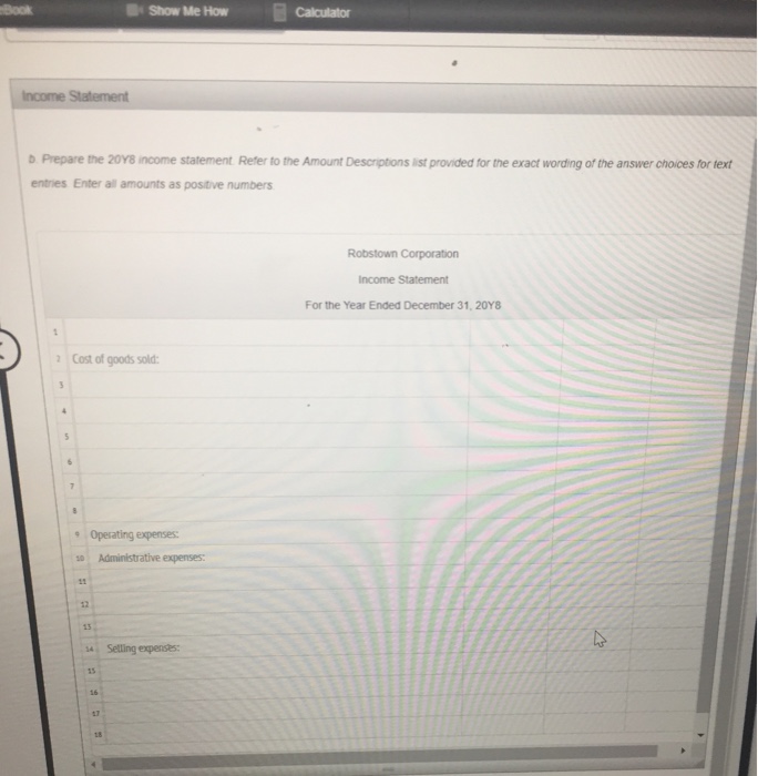 Robstown Corporation Income Statement For The Year Ended December 31 20y8